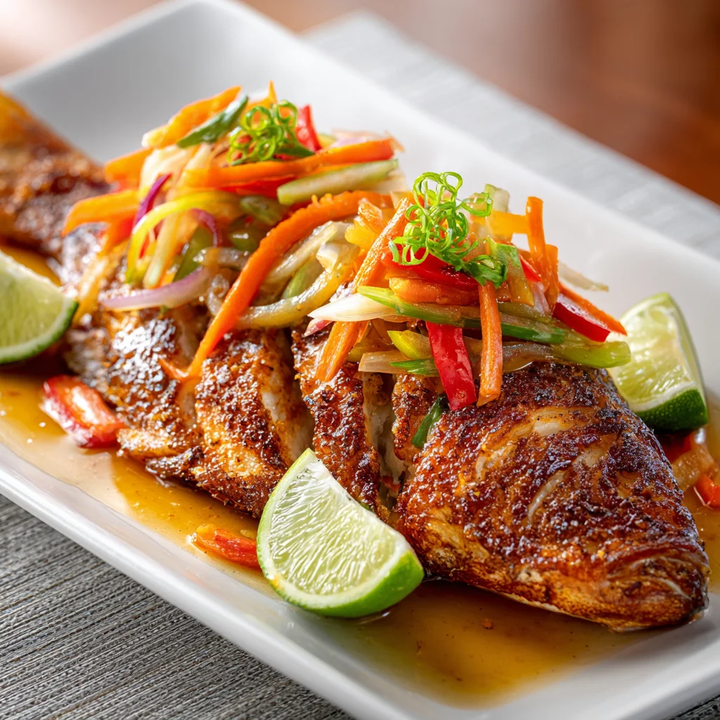 Fresh red snapper expertly seasoned. Choose from Fried served with escovitched sauce, Brownstewed, Curried, or Steamed with okras.