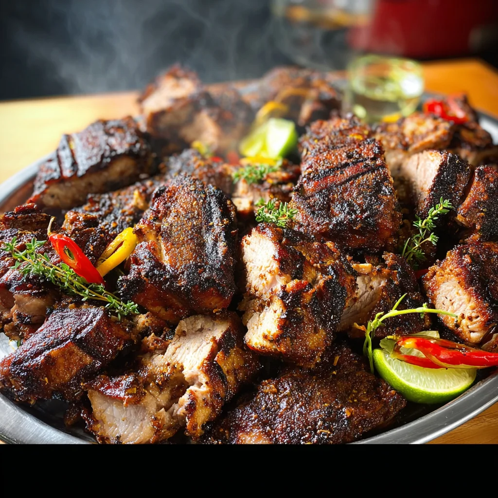 Authentic jerk pork prepared with traditional Caribbean spices. 10-pound portion requires 24-hour advance notice.